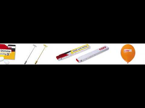 Die Kindheit und Jugend der Bundespräsidentin i.S. (in Spe) war vom CDU-Logo geprägt. Damit man sich eine Vorstellung davon machen kann, was alles mit CDU beschriftet sein kann, präsentiert sie dieses laufende Band. (Wer sich 10 Produkte merken kann, bekommt einen CDU-Kugelschreiber geschenkt.)